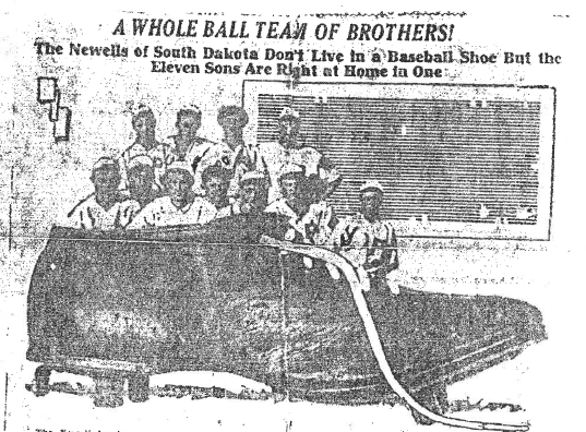 My family name has an old claim to fame – my great grandfather was one of the very few all brothers baseball teams in the country. The Newell Nine played in the 1920s and 1930s out of Plankington, SD. The family had 16 children – 12 boys and 4 girls. The second youngest boy died at the age of 6, but the other 11 were active ball players (the youngest was generally considered the mascot). My dad made some mention of this as we were growing up, and then we found more when my Uncle Darrel started digging further into our ancestry several years ago. He made a trip to the Baseball Hall of Fame to find their information, and since I repeated that trip earlier this week – I now have the info.
