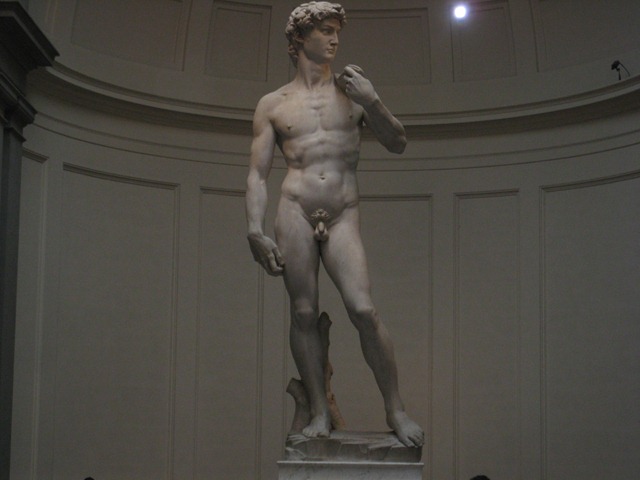 We got to “sleep in” until 7am on Sunday as we were looking forward to spending the day in Florence. Our hotel had a breakfast buffet, which was decent, and we dined with our companions before taking the bus to downtown Florence to begin our day at the Gallery Academie which is famous for housing Michelangelo’s statue of David. When we arrived downtown, we met our tour guide for the day – a lady named Tina – who took us through the museum and the rest of Florence for the morning. The Gallery Academie is not housed in an impressive looking building, but it had a lot of renaissance art and many of Michelangelo’s sculptures. I took a picture of the David, which I wasn’t supposed to, but just an FYI, this post will be rated PG-13 because of a lot of nude men. We were a little rushed in our museum trip, so we didn’t get to admire much besides David and missed the second floor completely.