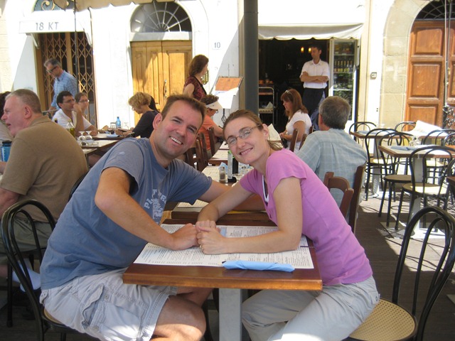 We finished the day with dinner at the Il Grifone right around the corner from our hotel (Hotel Grifone). We had pasta and salad, fries and a pork chop with a huge chunk of watermelon for desert. I’ve never had watermelon before as a desert – it was good watermelon though. We watched the movie “Million Dollar Baby” before we went to bed – it was a good movie (Becky really liked it).