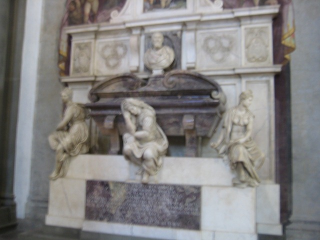 We ate at a restaurant in the plaza outside the Sante Croce church – Becky had ravioli with spinach and I had roast beef carpaccio. We then went into the church and saw the tombs of Michelangelo, Dante and Galileo. After this we decided to head back to the sites we’d seen thus far to get a chance to spend more time at each of them – and we were looking for Becky’s favorite store, H&M, because we had noticed someone had a bag from there. We went back to the Sante Maria Cathedrale, but the line was so long to get in there (even though it was free and the line was moving) that we decided just to roam around the streets. We had a fun time stopping at some shops and markets and then finding our way to H&M, where I lost about 45 minutes of my life and most of my savings. After that (and a stop for Gelato) we headed across the Ponte Vecchio (old bridge) to the other side of the river. There were just as many people over there. We found a shop called Italian Appeal which Becky loved and a little supermarket, which always excites me because you can get Coke for more than half off what you pay at most places. We saw the Pitti Palace and turned around and headed back towards our hotel. We made the command decision to walk all the way back as we passed a taxi station – it turned out to be about a 35 minute walk. We made it to the hotel and passed out with exhaustion.